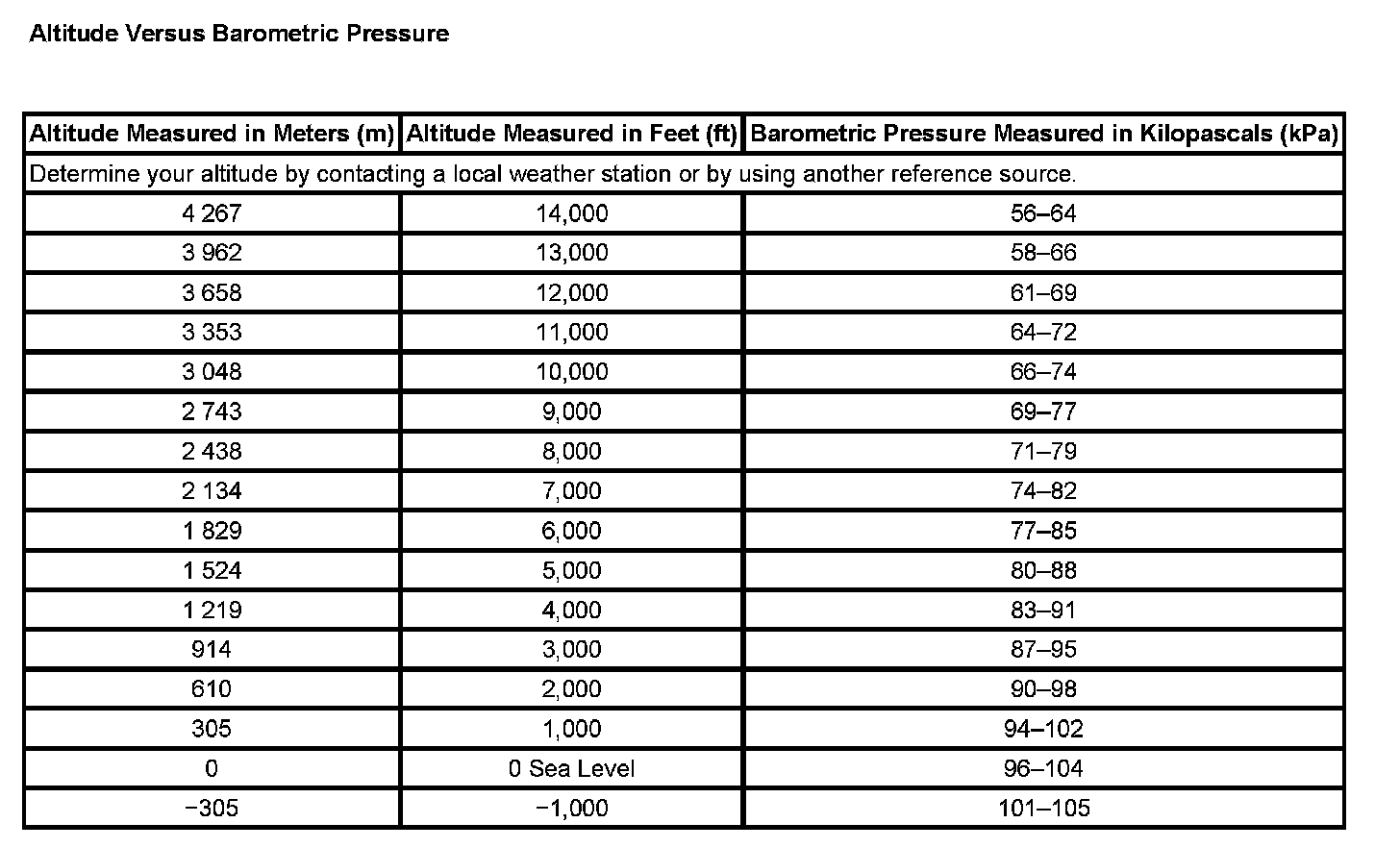 Altitude Versus Barometric Pressure