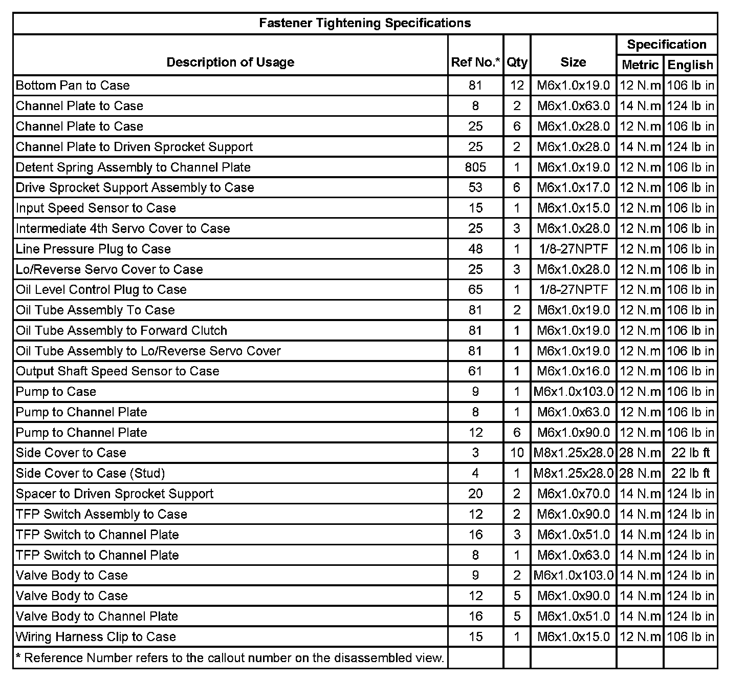 Fastener Tightening Specifications: