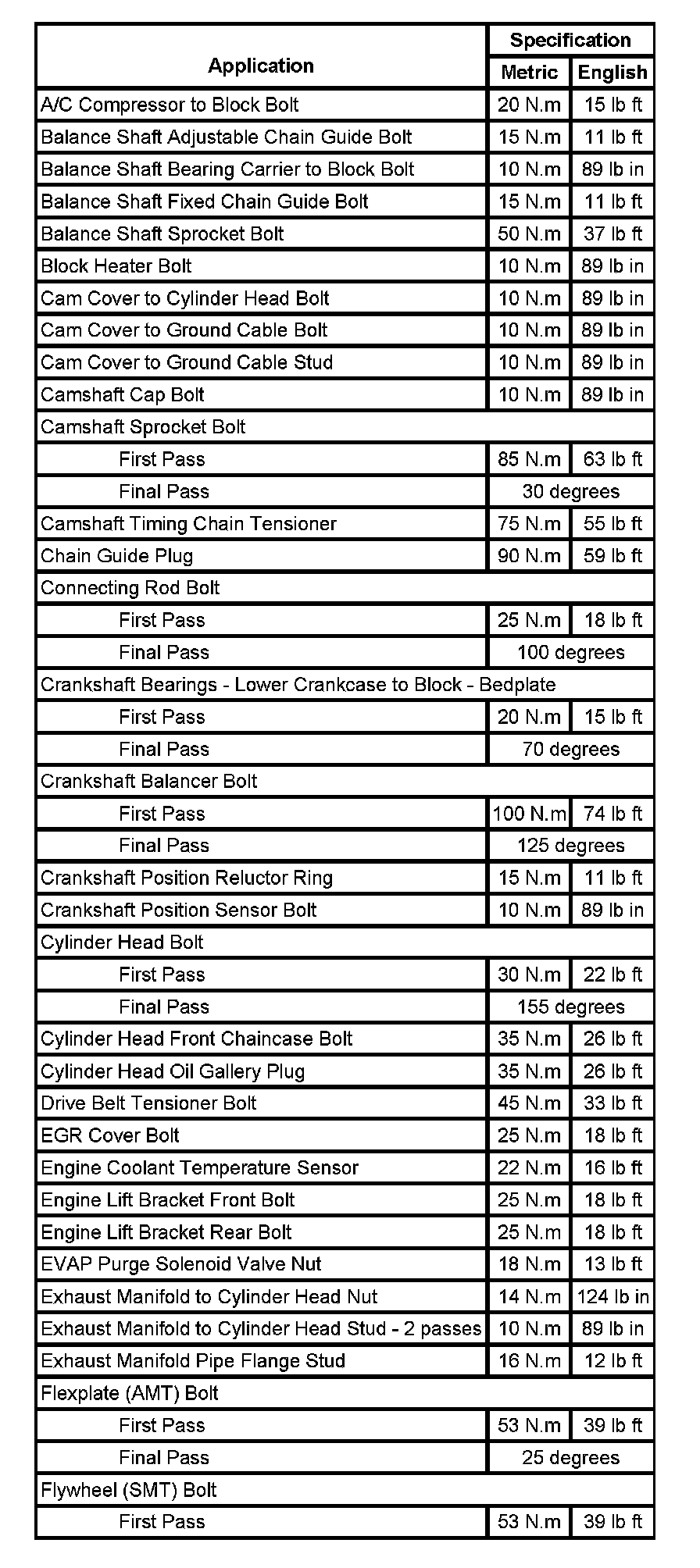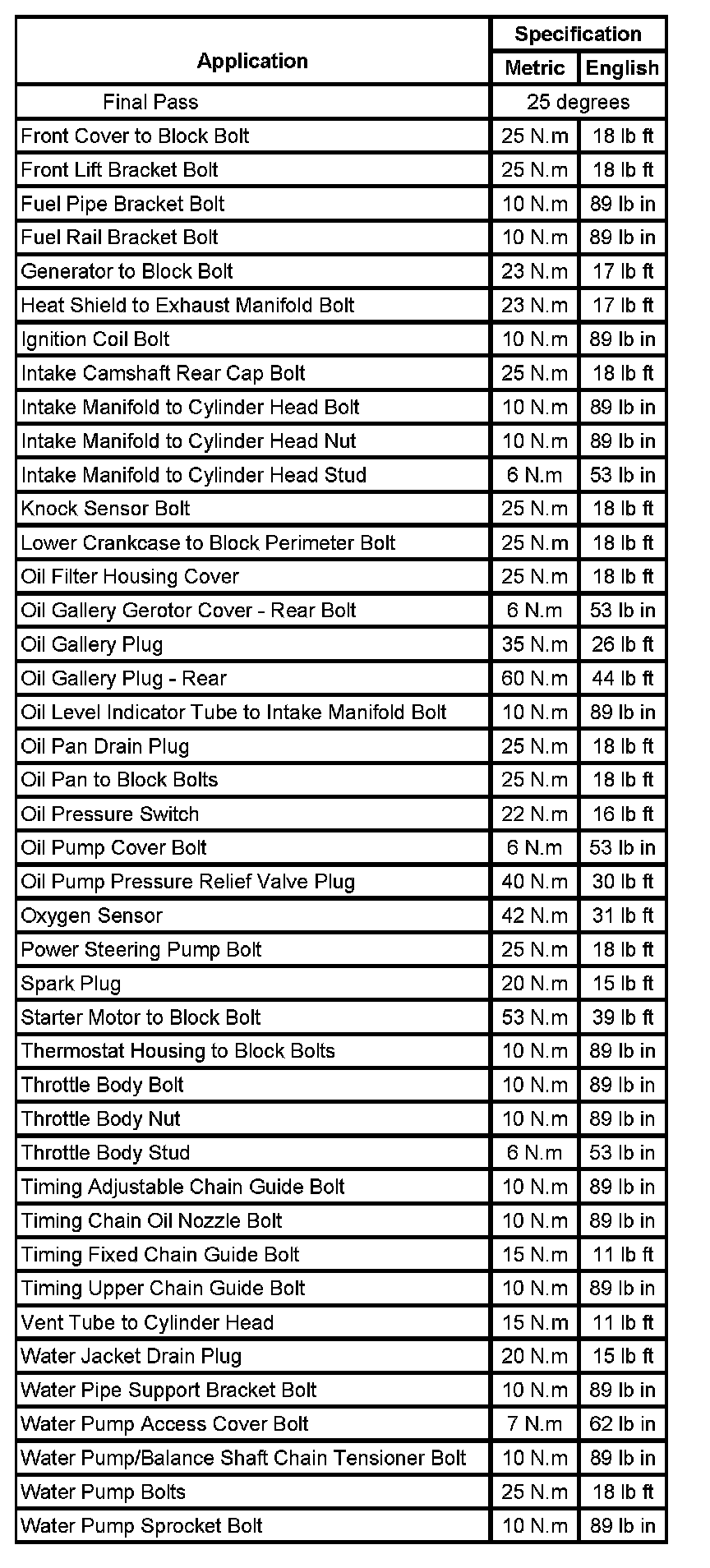 Fastener Tightening Specifications (Part 1):
