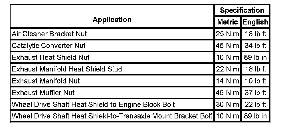 Fastener Tightening Specifications: