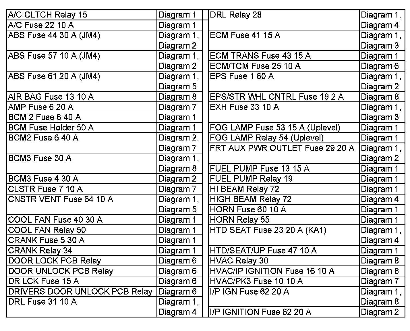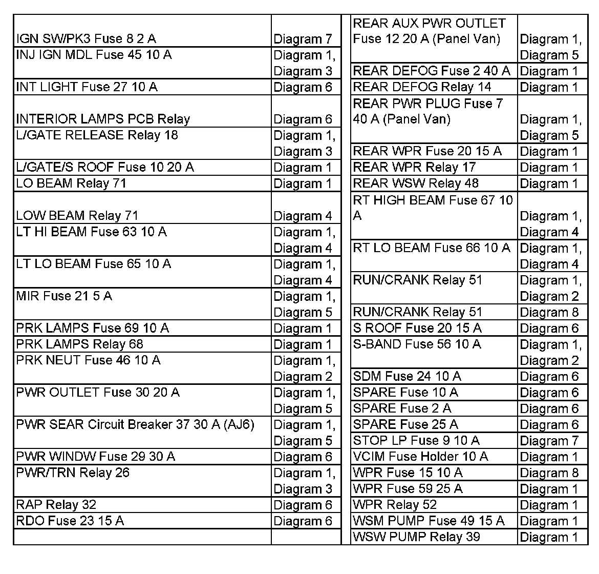Power Distribution Diagram Index