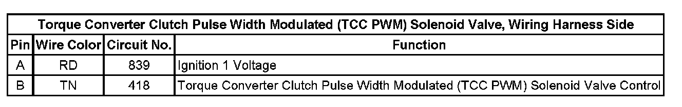 Torque Converter Clutch Pulse Width Modulated (TCC PWM) Solenoid Valve, Wiring Harness Side: