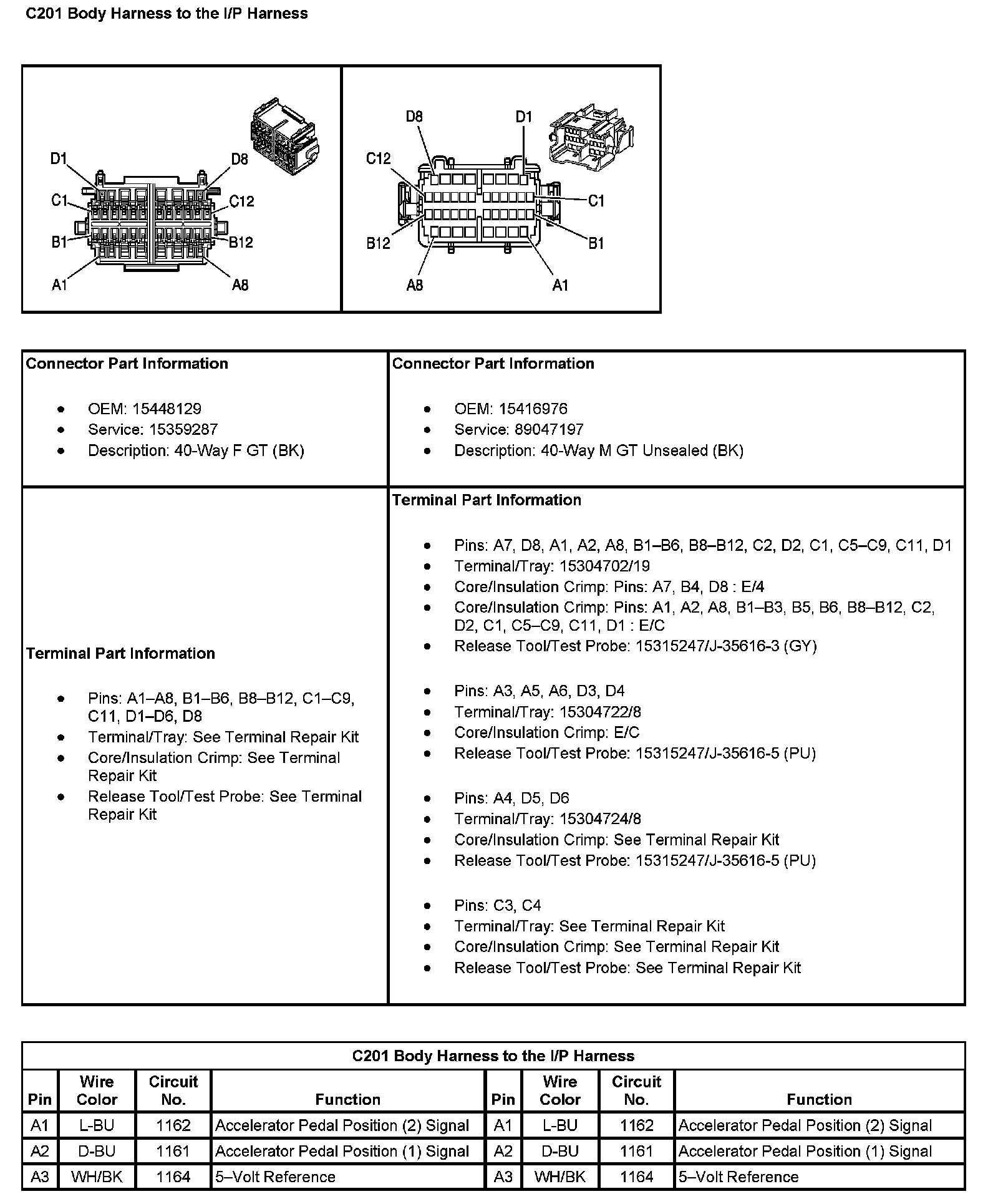 C201 Body Harness To The I/P Harness (Pin A1 To A3):