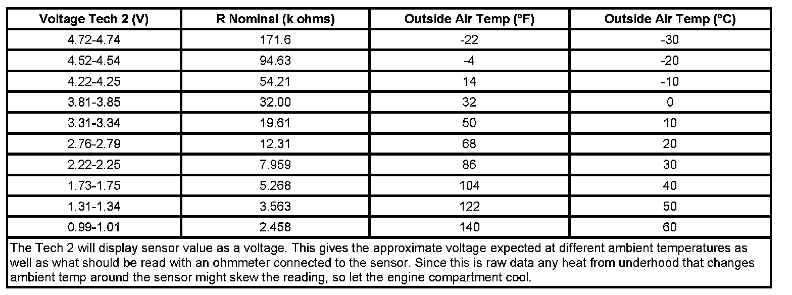 Sensor Resistance Table (Volts to Temp to Resistance)
