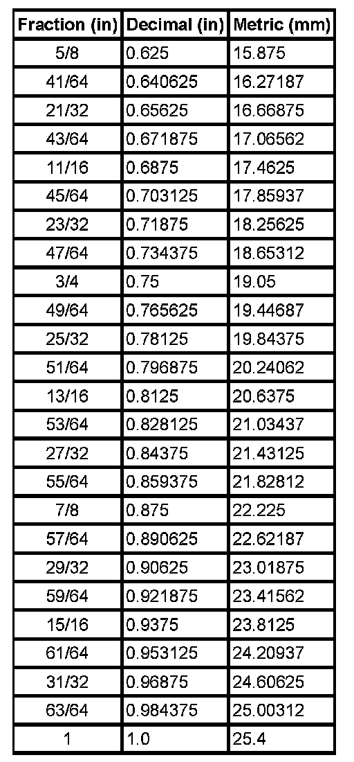 Decimal and Metric Equivalents