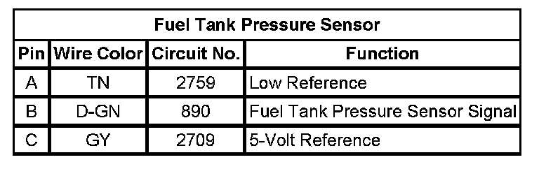 Fuel Tank Pressure Sensor: Diagrams