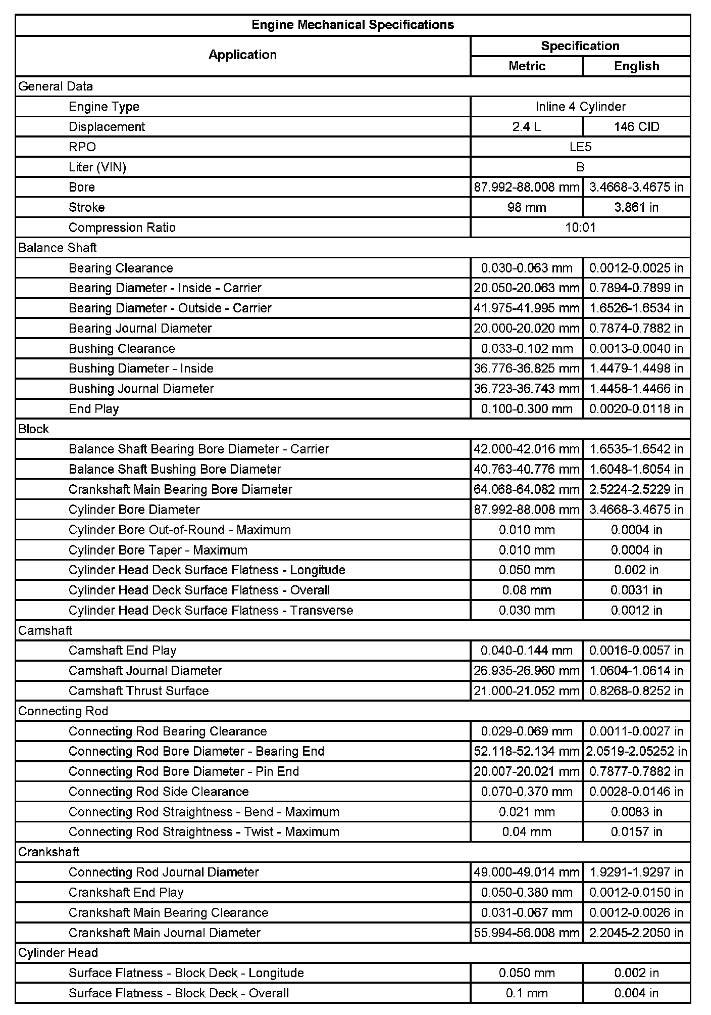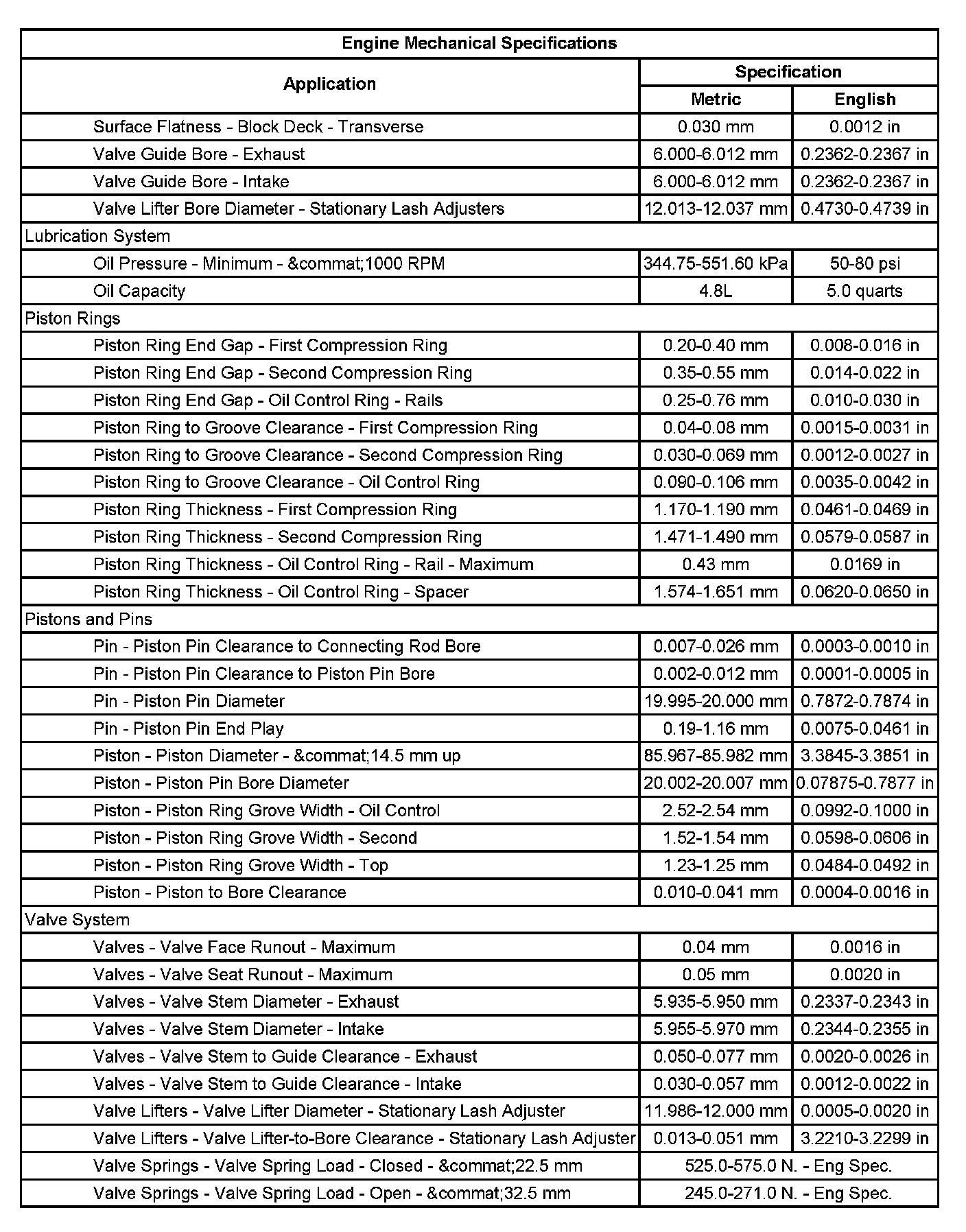 Engine Mechanical Specifications