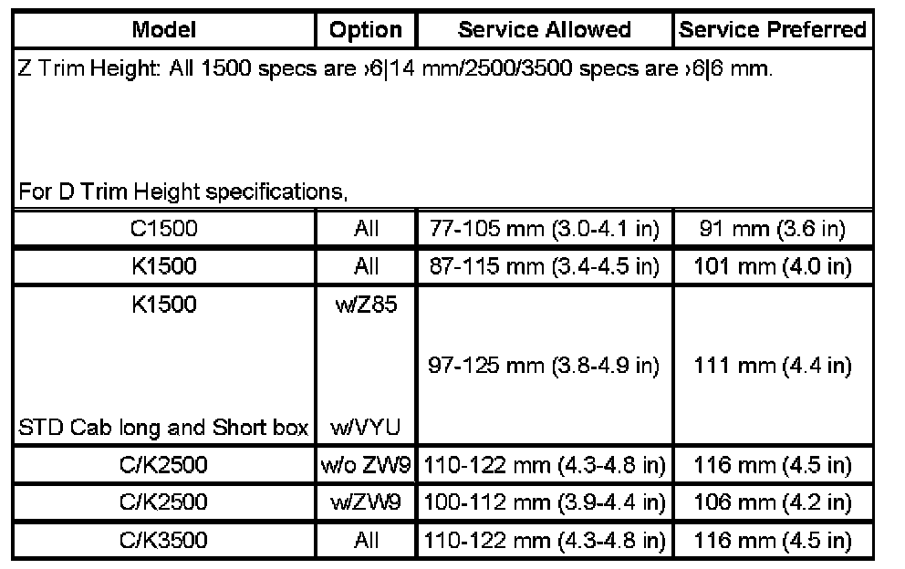 Trim Height Specifications: