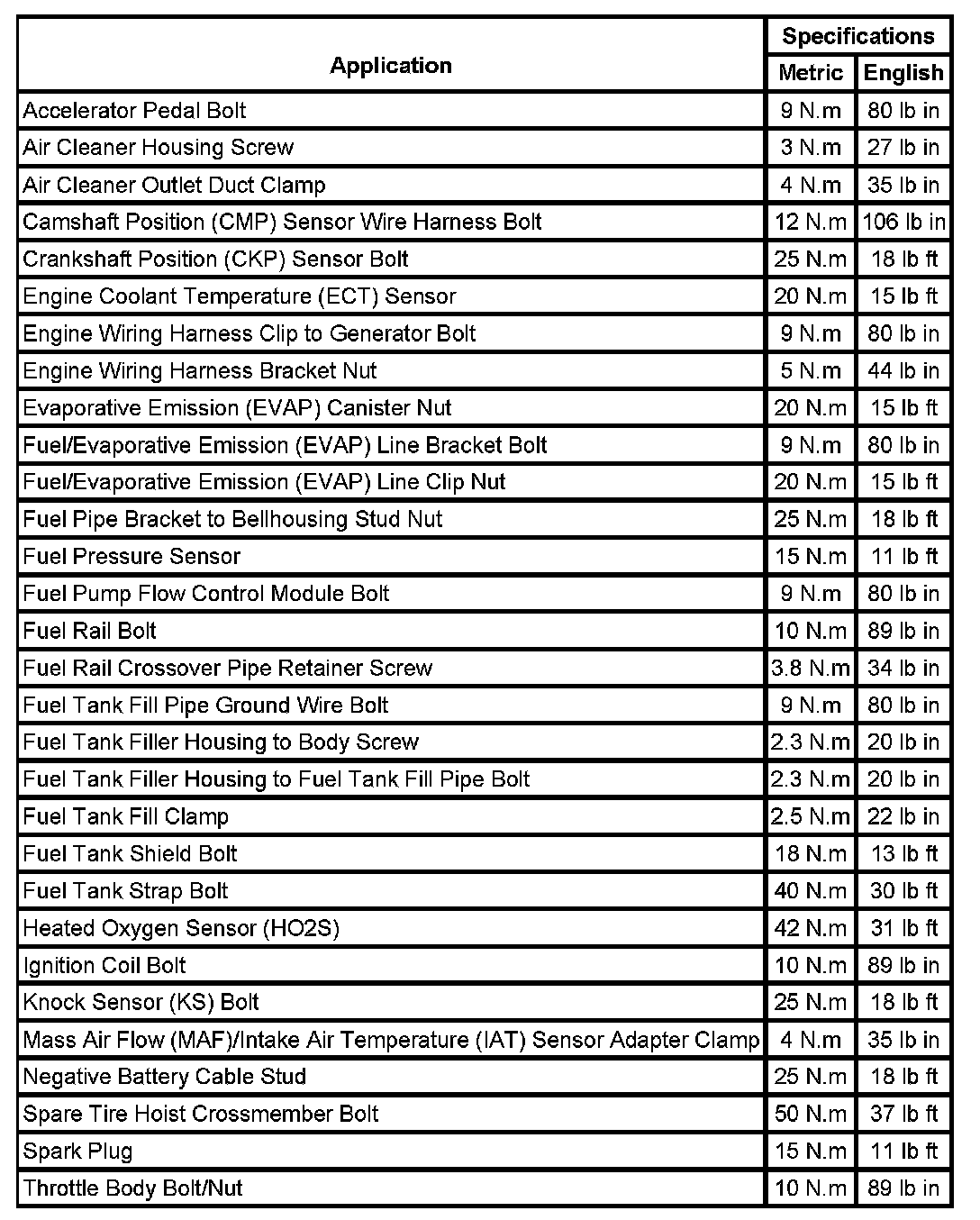 Fastener Tightening Specifications
