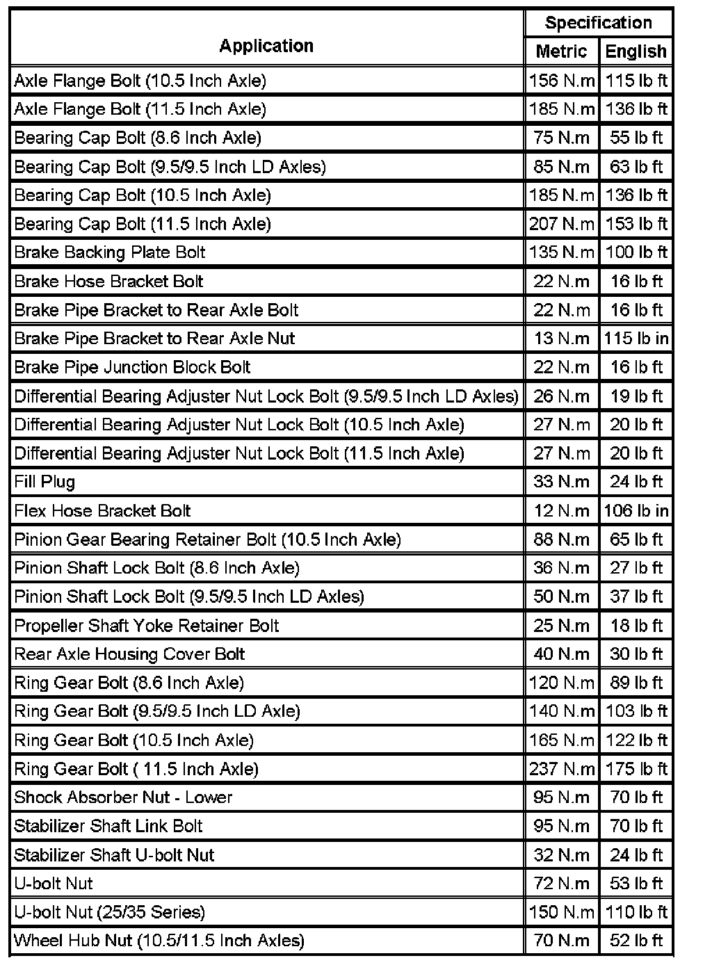 Fastener Tightening Specifications: