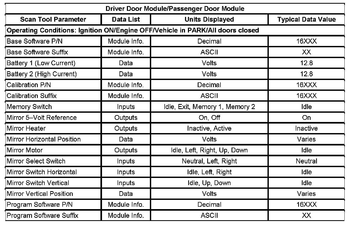 Driver Door Module/Passenger Door Module: