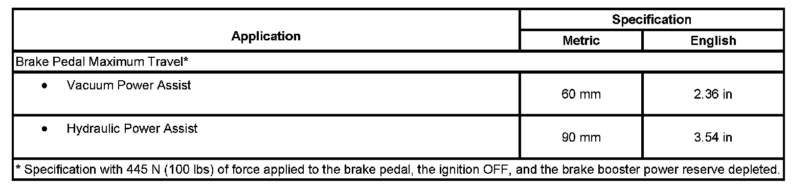 Brake System Specifications: