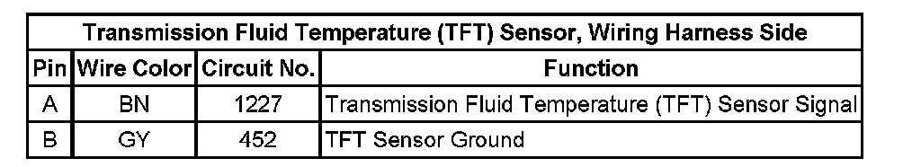 Transmission Fluid Temperature (TFT) Sensor, Wiring Harness Side: