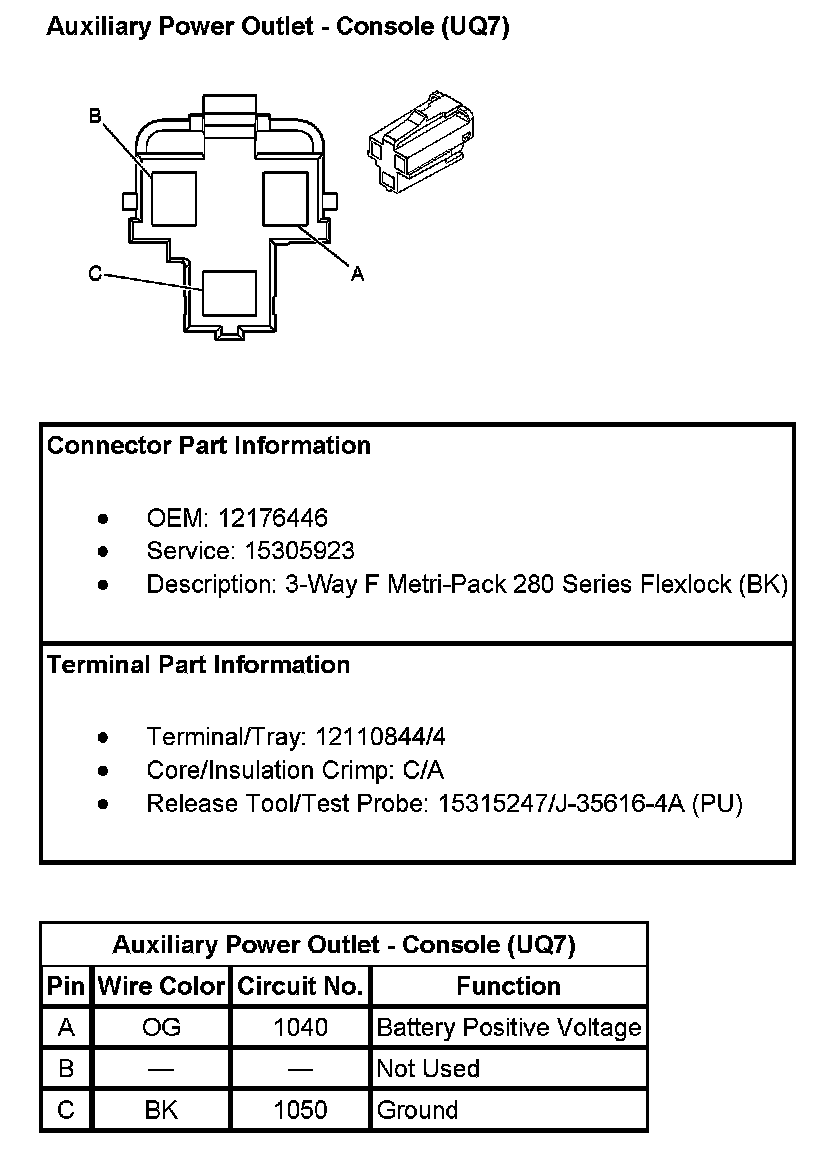 Auxiliary Power Outlet - Console (with RPO Code UQ7):