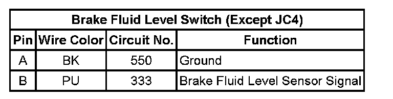 Brake Fluid Level Switch (Except JC4):