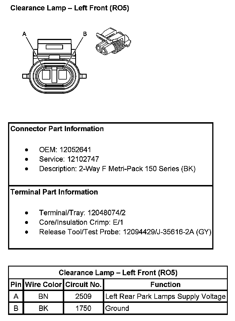Clearance Lamp - Left Front (With RPO Code RO5):