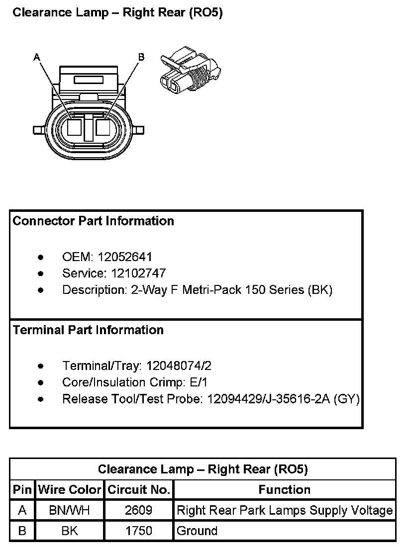 Clearance Lamp - Right Rear (With RPO Code RO5):