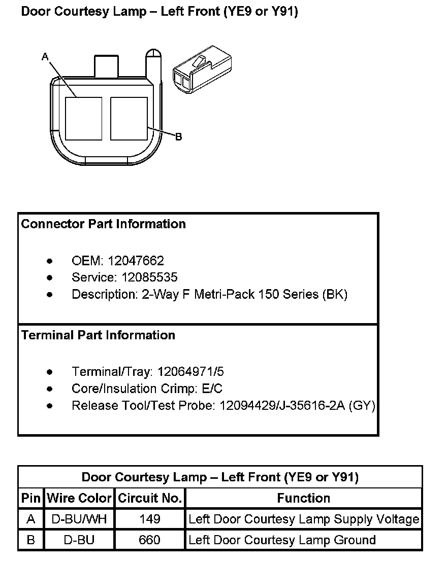 Door Courtesy Lamp - Left Front (With RPO Code YE9 Or Y91):