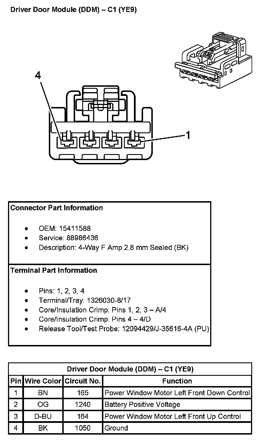 Driver Door Module (DDM) - C1 (With RPO Code YE9):