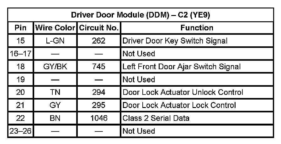 Driver Door Module (DDM) - C2 (With RPO Code YE9) (Pin 15 To 26):