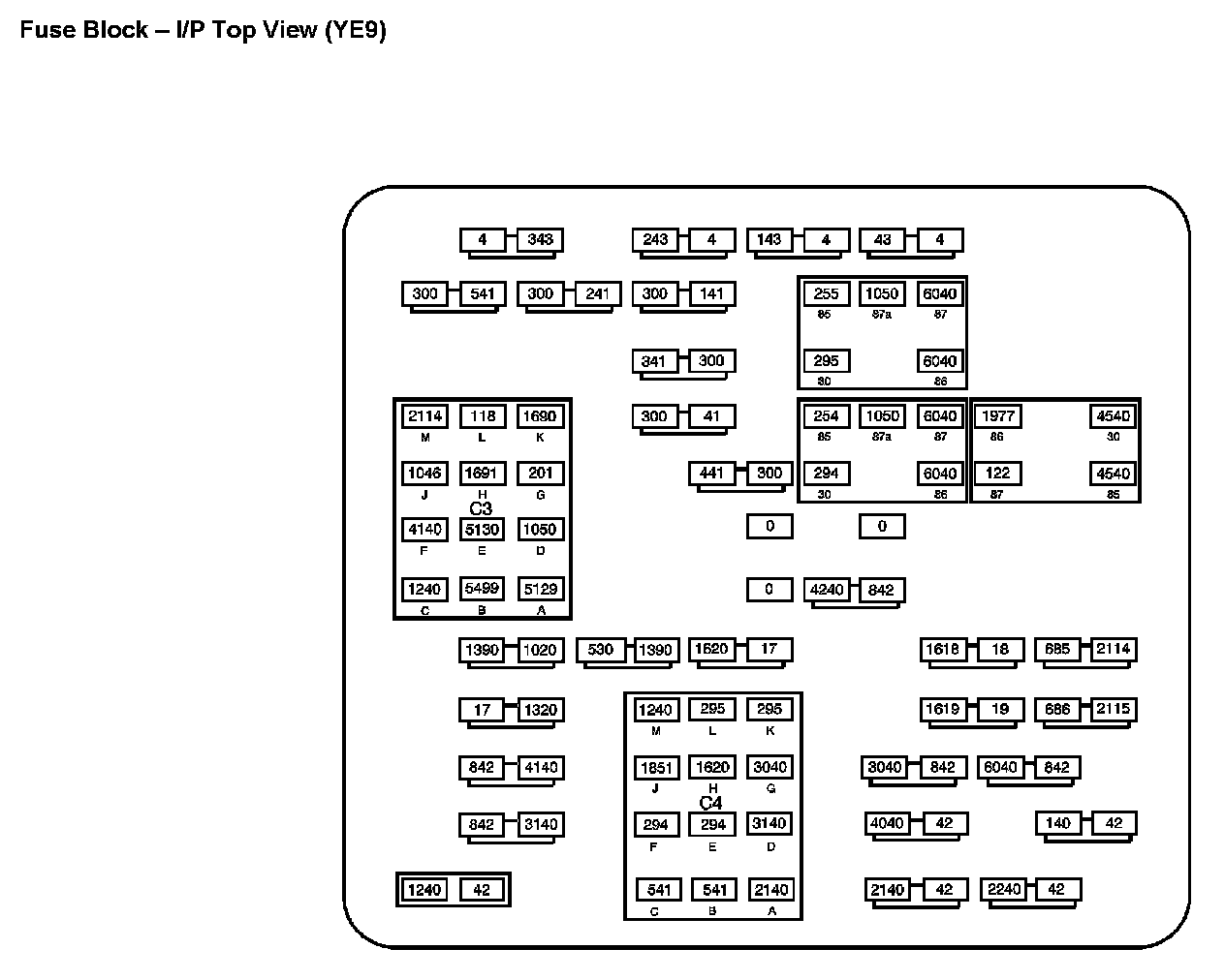 Fuse Block - I/P Top View (With RPO Code YE9):
