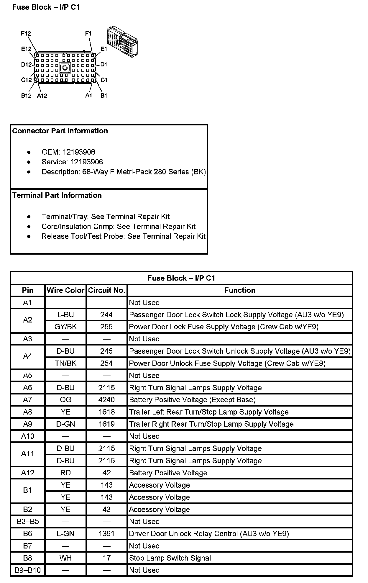Fuse Block - I/P C1 (Pin A1 To B10):