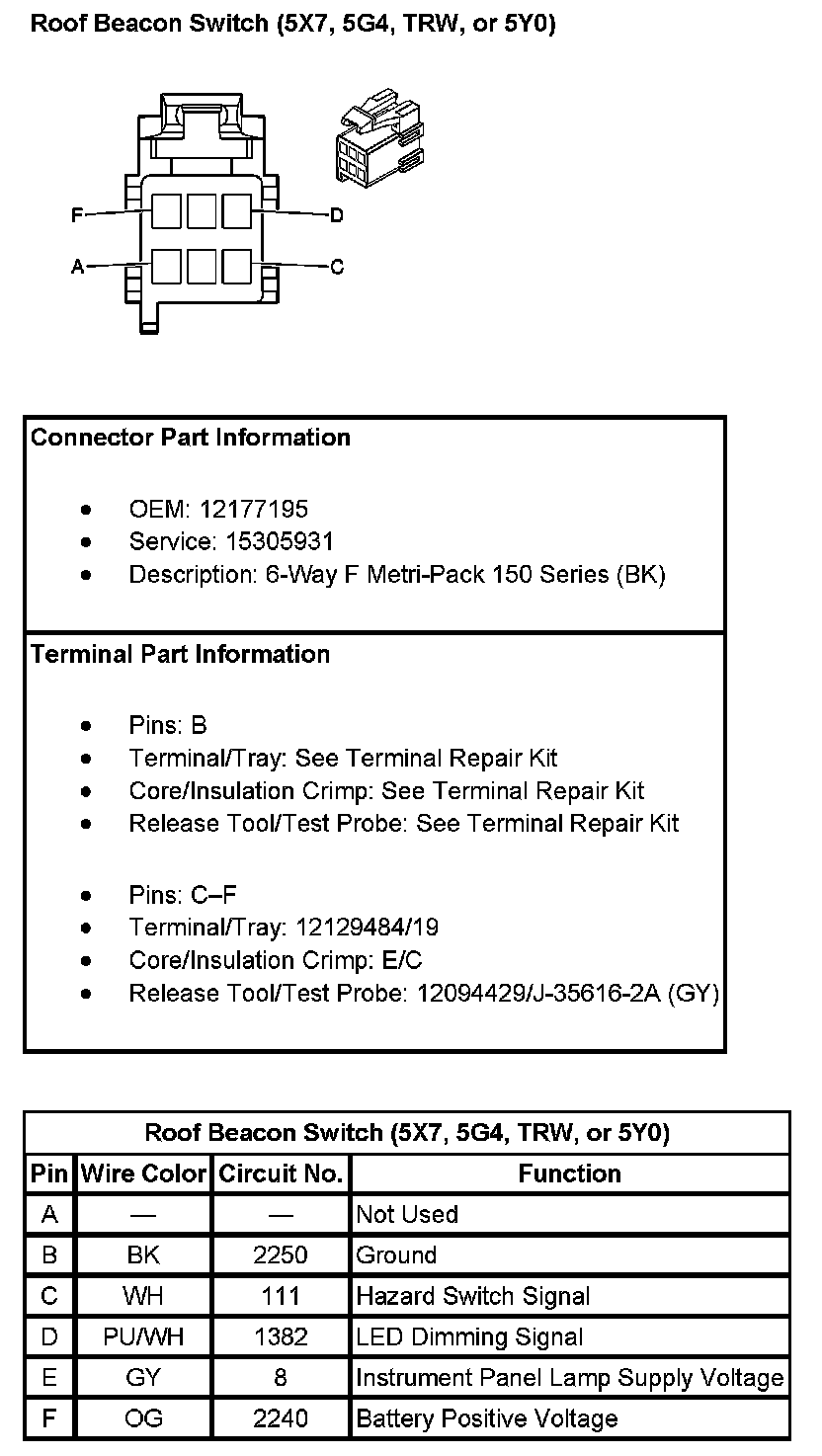 Roof Beacon Switch (With RPO Codes 5X7, 5G4, TRW, Or 5Y0):