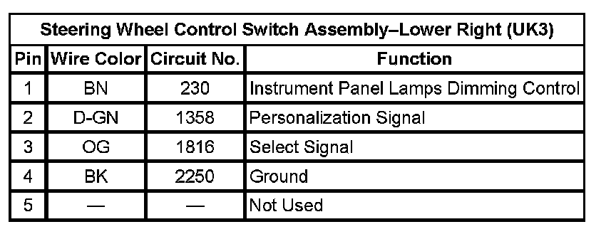 Steering Wheel Control Switch Assembly-Lower Right (UK3)