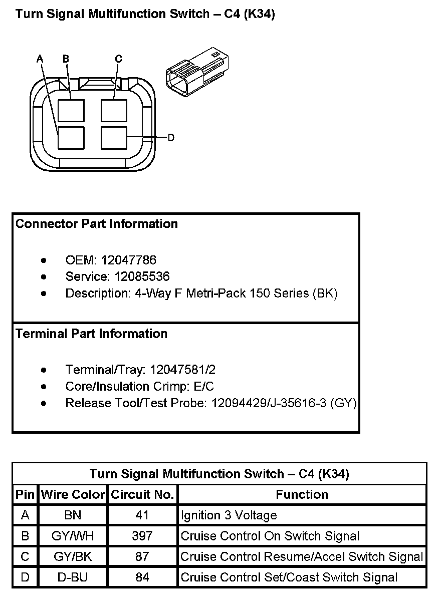 Turn Signal Multifunction Switch - C4 (With RPO Code K34):