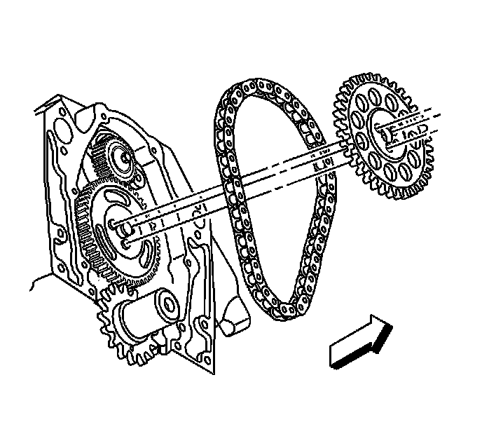 3. Notice: Align the timing marks before removing the timing chain. If it is necessary to turn either the camshaft or the crankshaft with the timing chain removed, loosen or remove the valve rocker arms. Turning either the crankshaft or camshaft with the timing chain removed may cause the pistons to contact the valves, resulting in damage.