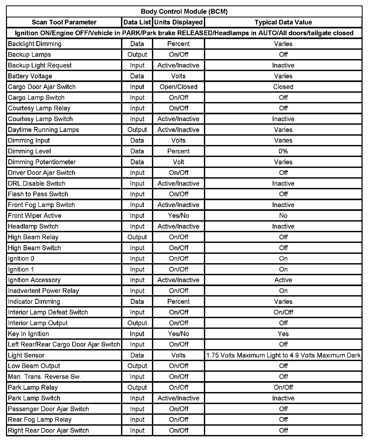 Body Control Module (BCM):