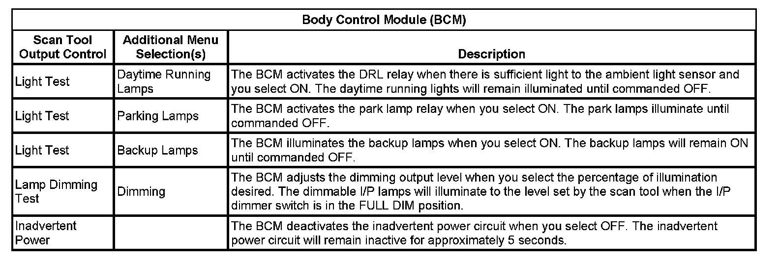 Body Control Module (BCM):
