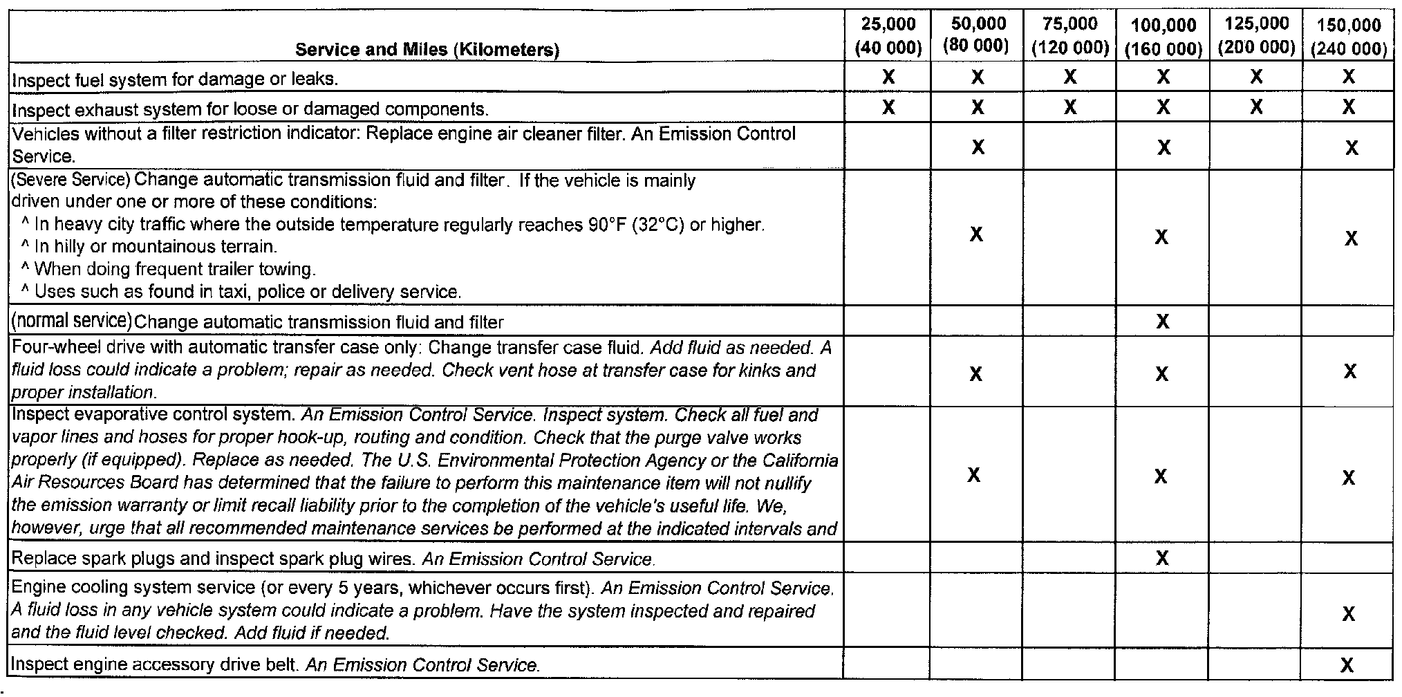 service (I or II) after the indicated miles (kilometers) shown for each item.