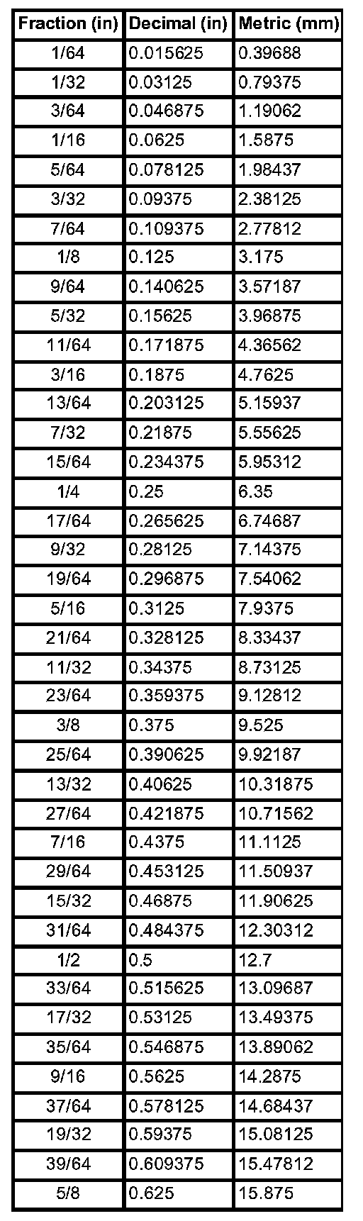 Decimal and Metric Equivalents