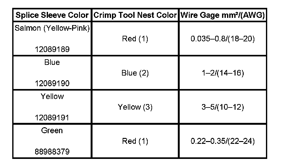 6. Select the proper DuraSeal splice sleeve according to the wire size. Refer to the above table at the beginning of the repair procedure for the color coding of the DuraSeal splice sleeves and the crimp tool nests.