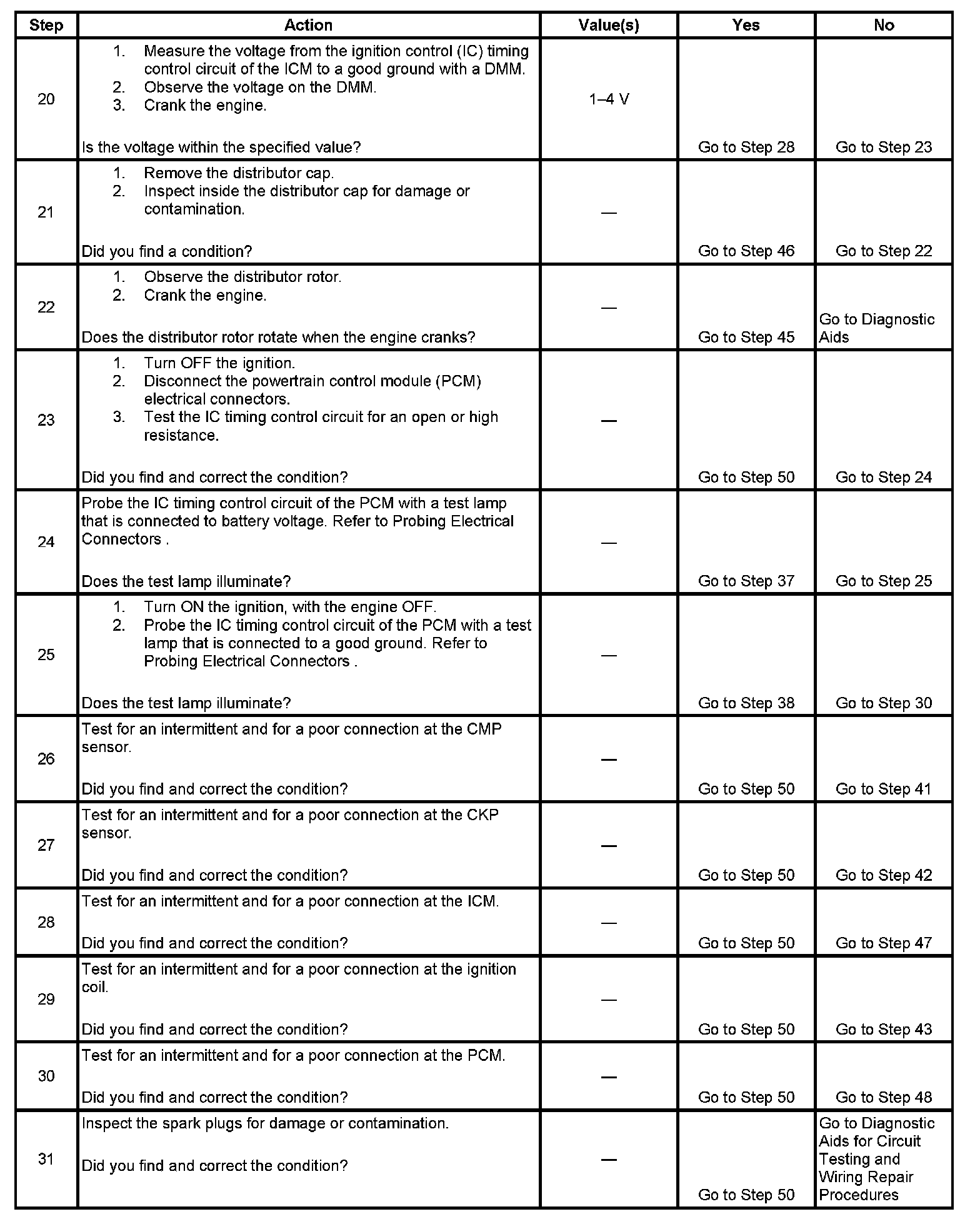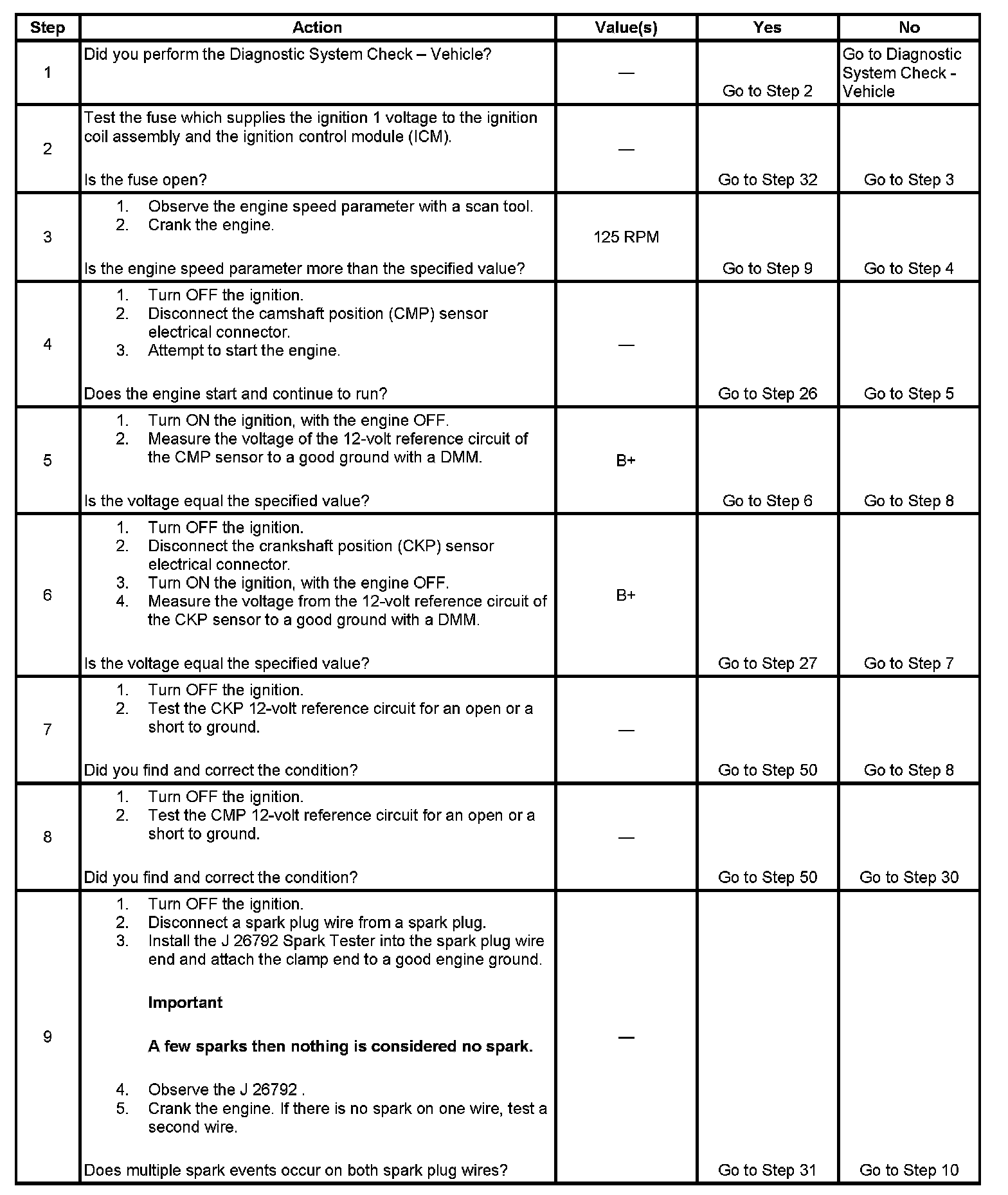 The distributor ignition (DI) system diagnostic table assumes the following conditions: