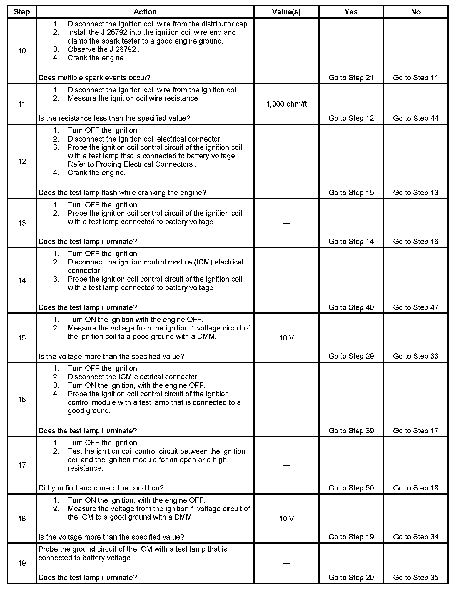 9. This step tests for spark output at more than one spark plug wire. The J 26792 Spark Plug Tester requires a minimum of 25,000 volts to operate.