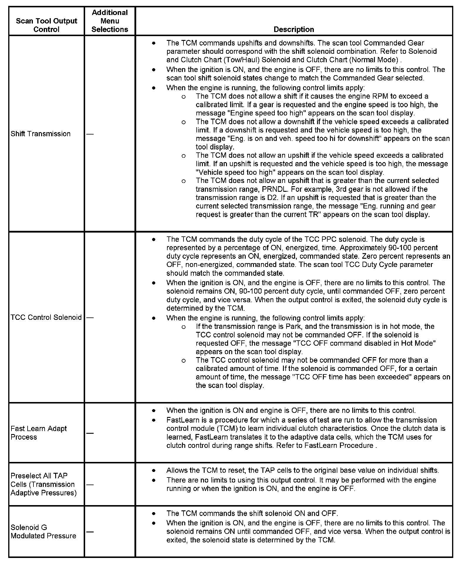 Scan Tool Output Controls