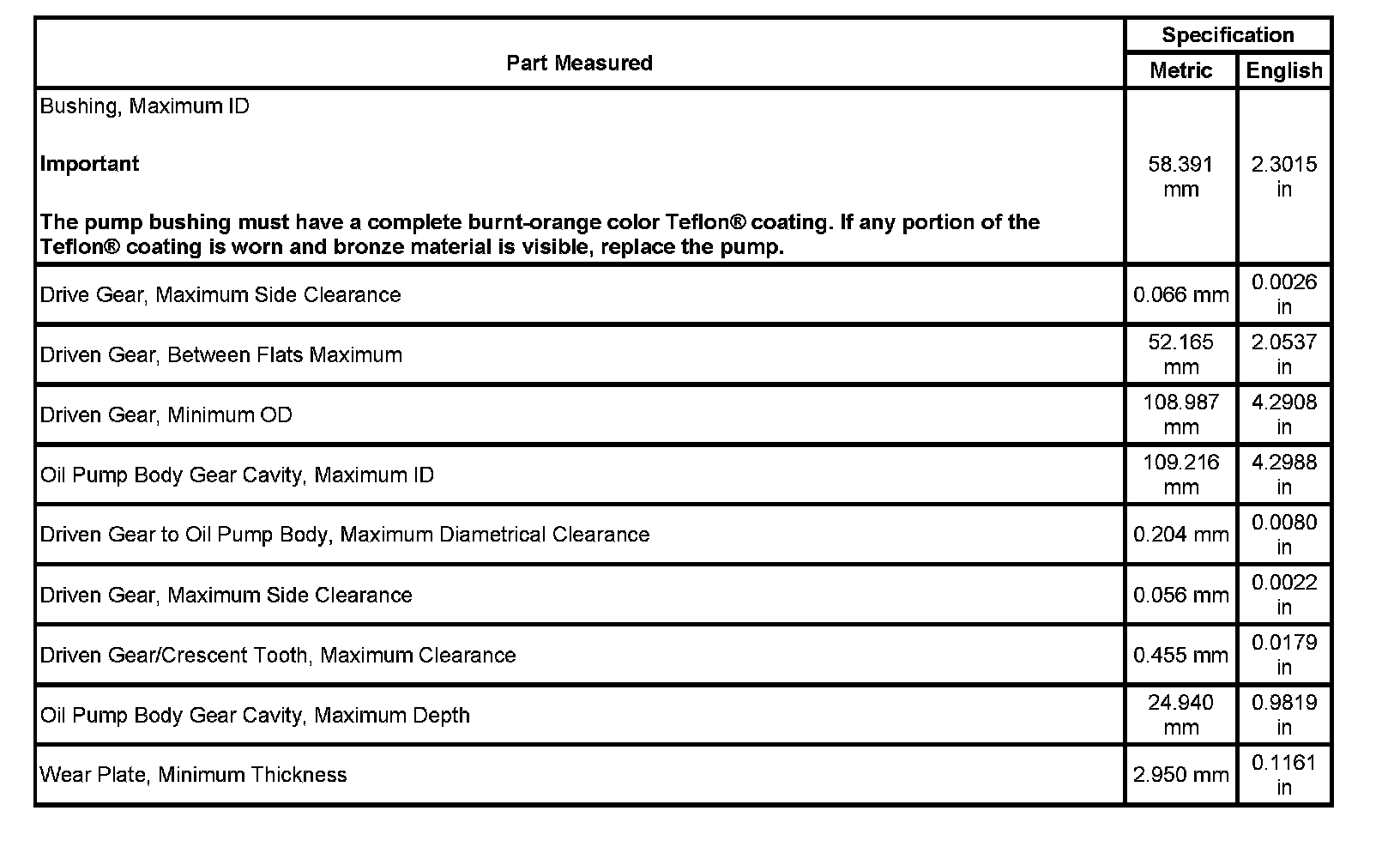 Oil Pump Specifications: