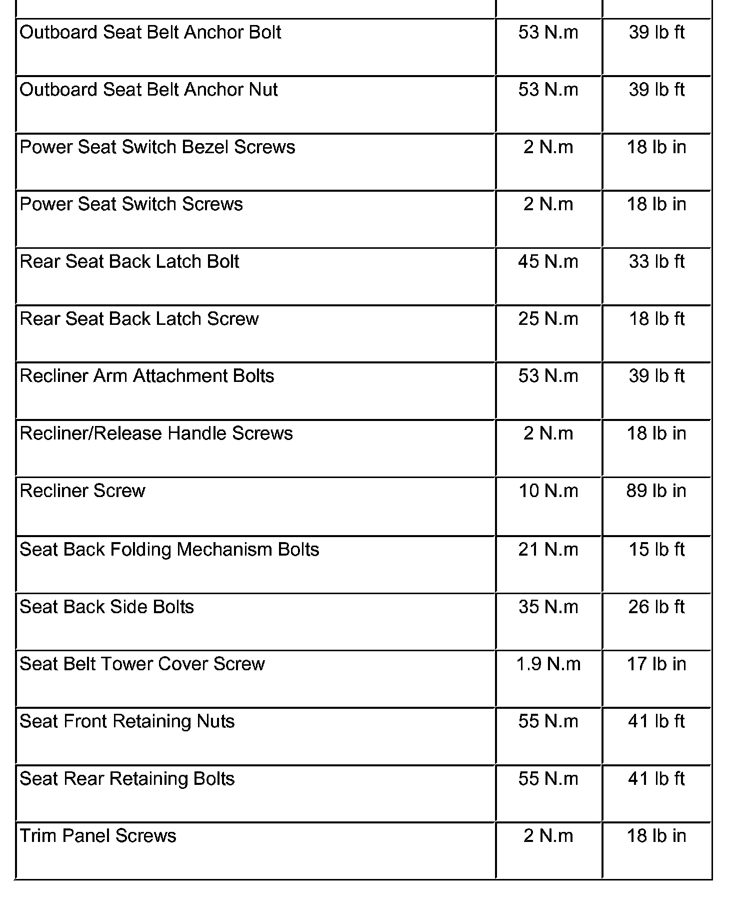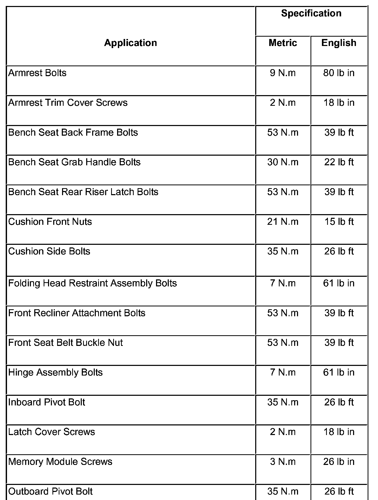 Fastener Tightening Specifications