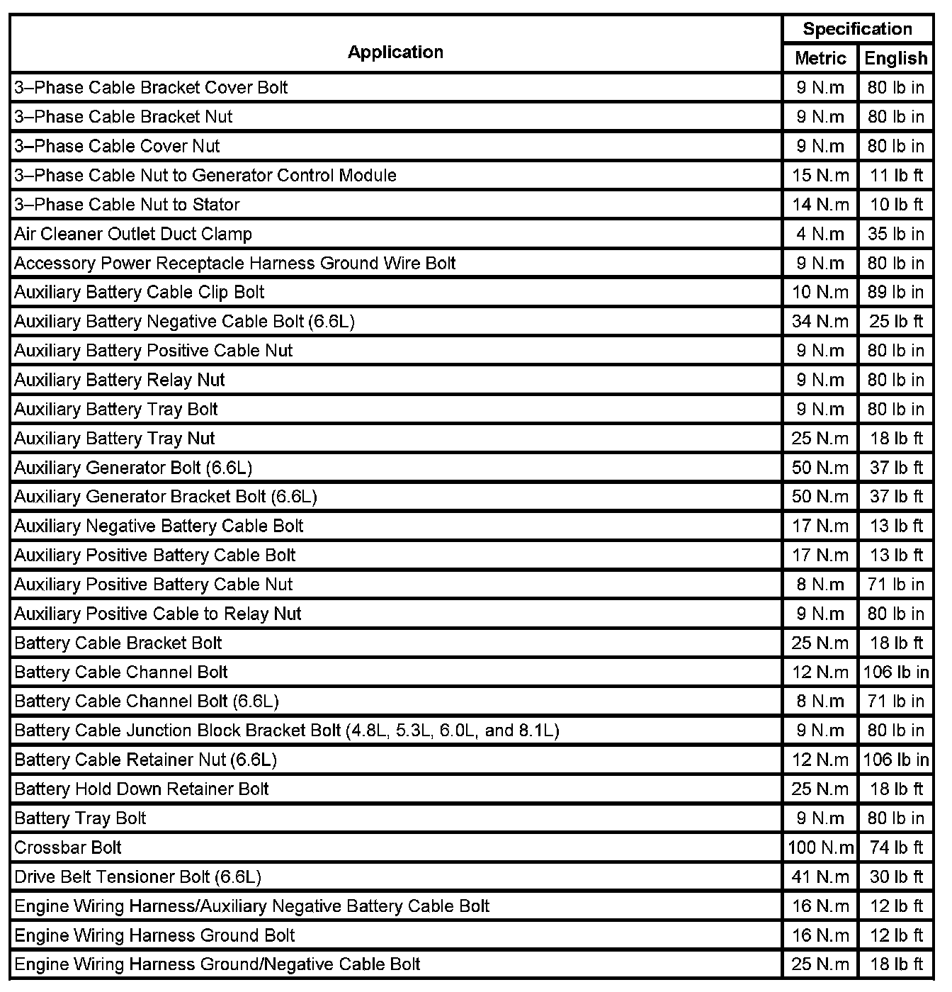 Fastener Tightening Specifications