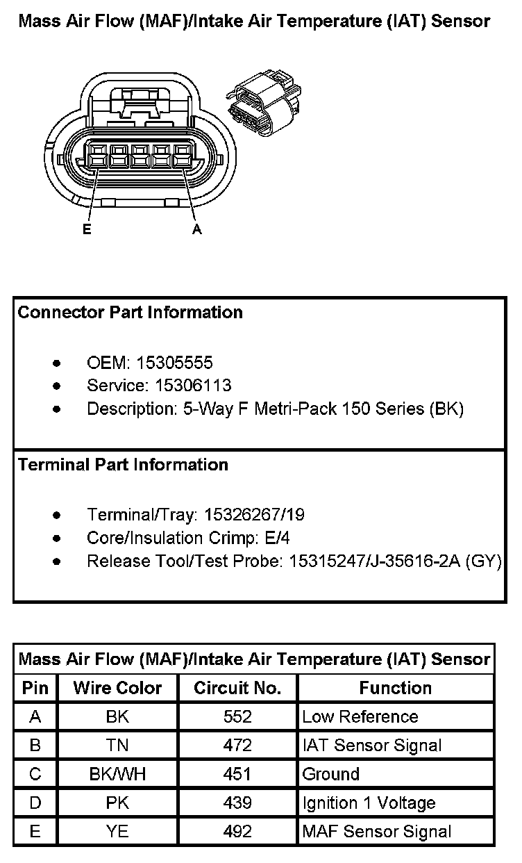 Mass Air Flow (MAF)/Intake Air Temperature (IAT) Sensor: