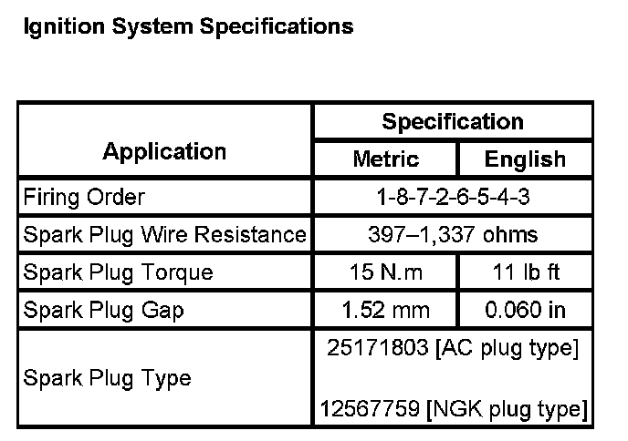 Ignition System Specifications: