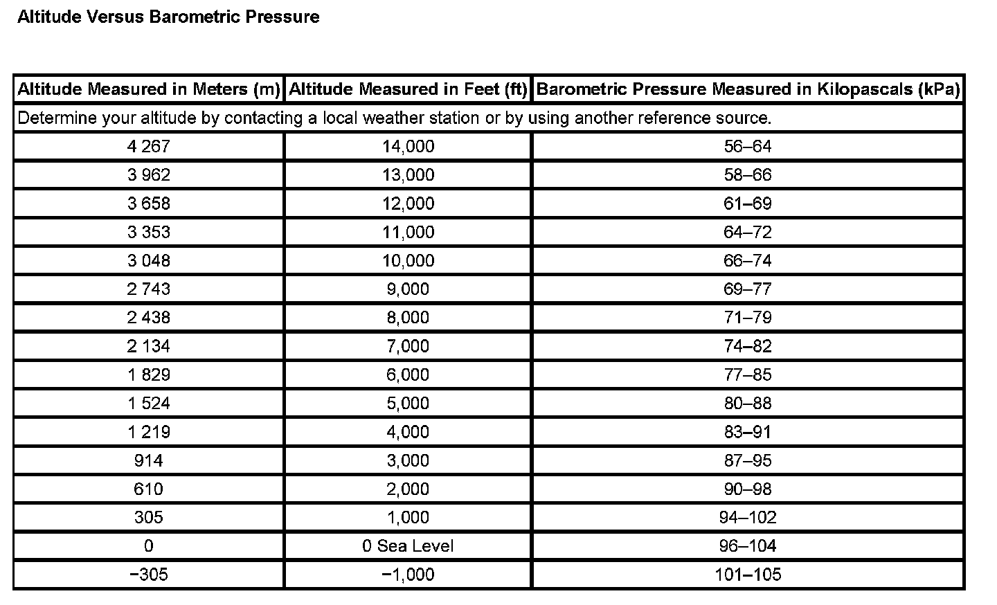 Altitude Versus Barometric Pressure: