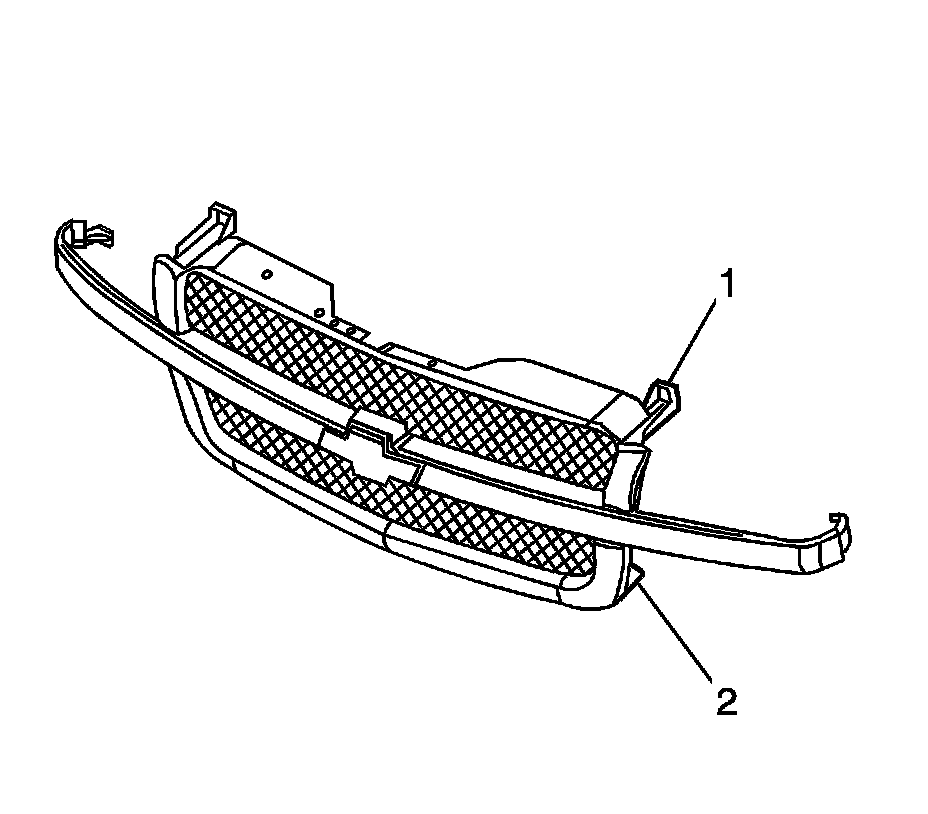 4. Release the side grille retainer (1) from the fender (2). Remove the grille from the vehicle.