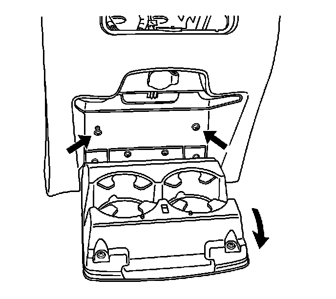 2. Remove the rear cupholder from the end panel. Refer to Front Floor Console Rear Cup Holder Replacement .