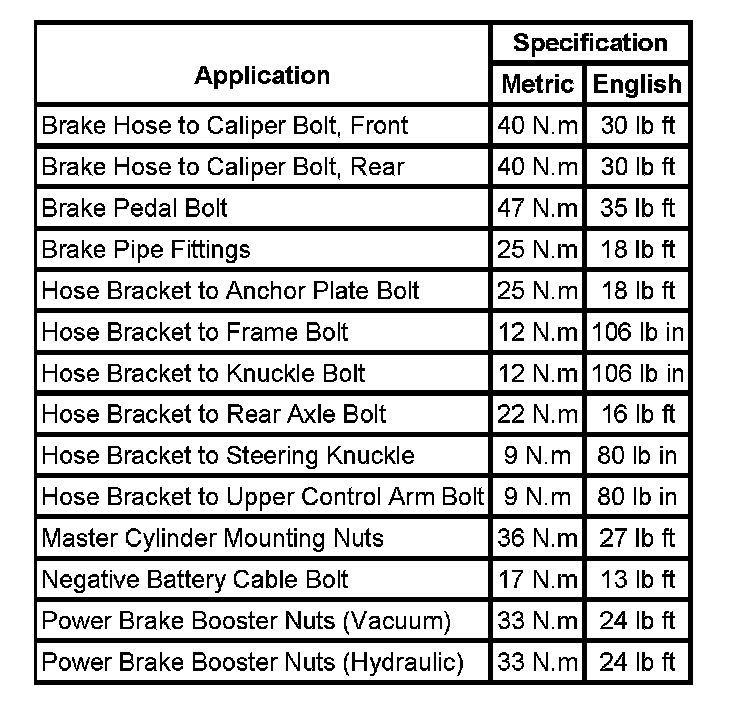 Fastener Tightening Specifications:
