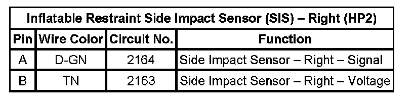 Inflatable Restraint Sensing And Diagnostic Module (SDM) (Pin 1 To 21):
