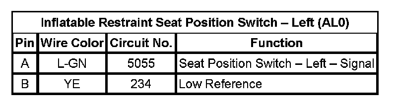 Inflatable Restraint Seat Position Switch - Left (AL0)