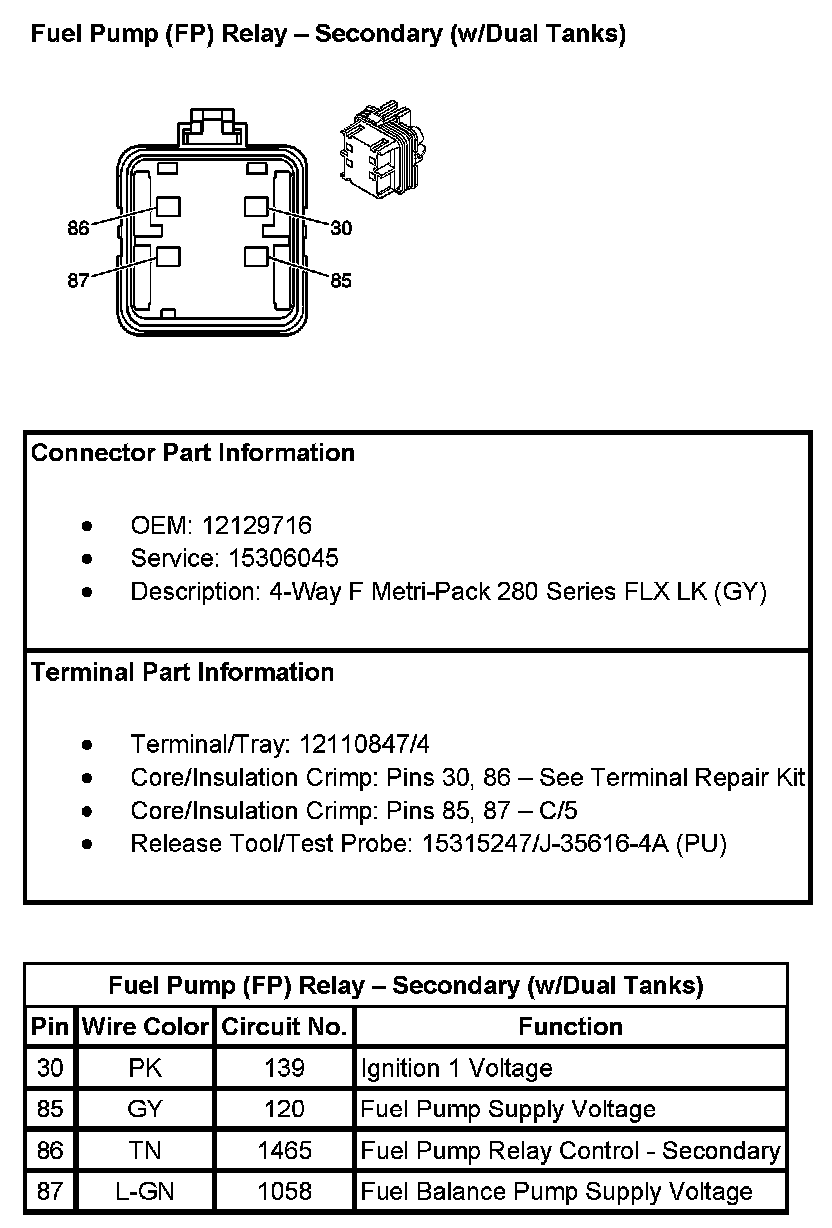 Fuel Pump (FP) Relay - Secondary (With RPO Code Dual Tanks):